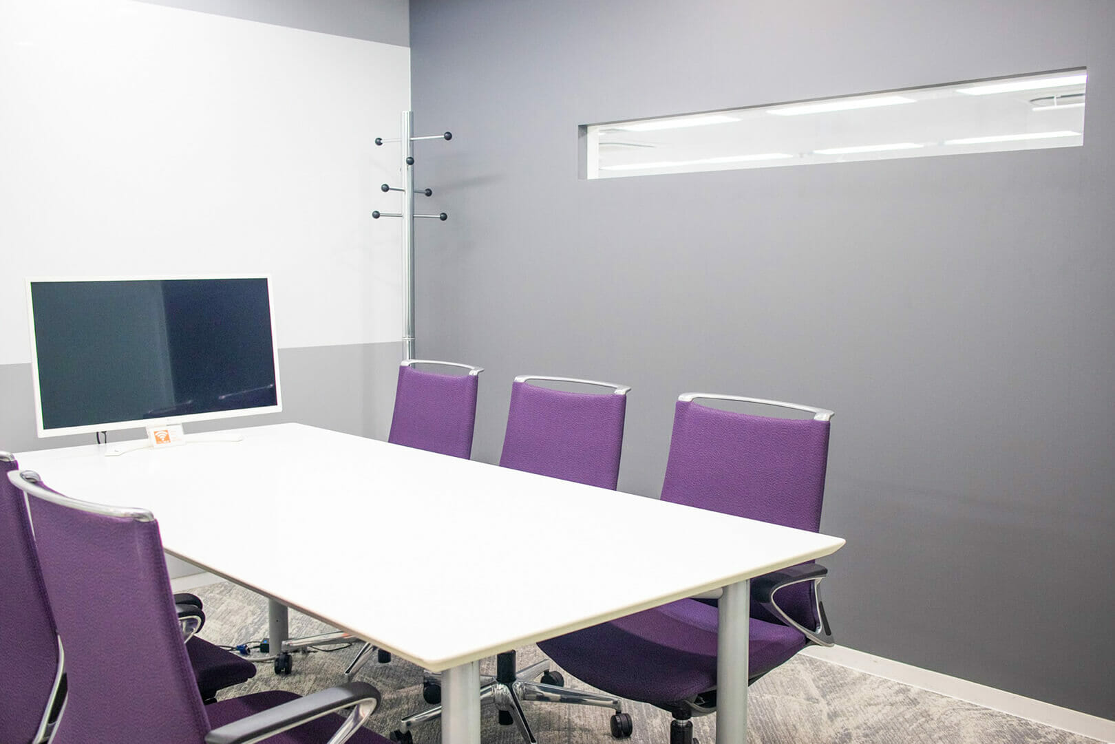 来客用会議室は意匠に配慮するだけでなく、面接や商談シーンで初めて来訪された方が実際に従業員のみなさまがどのように働かれているかを見学することができる仕掛けを施しました。