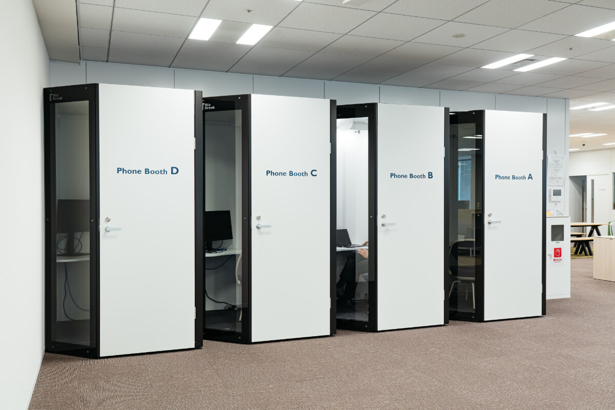 ハーマンインターナショナル様は個々でのWEBミーティングも多いとのことで、周囲への音の配慮として、フルクローズのミーティングスペースも設けました。