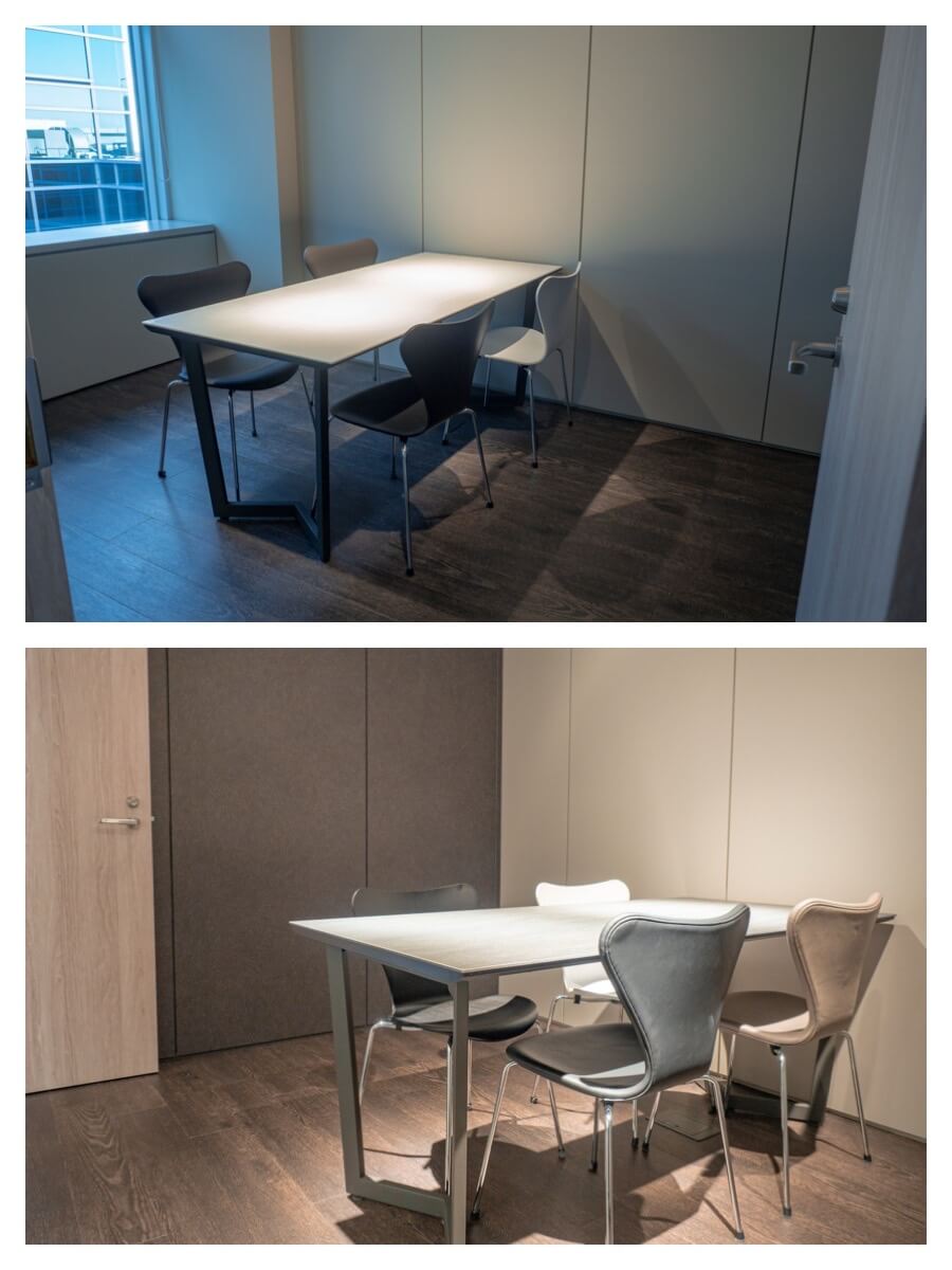 日本エーコン様は分野が違うとはいえ設計のプロフェッショナル。建築については、様々な専門知識をお持ちです。そこでオフィス設計ならではの視点を加えて、お客様が実現したい空間イメージを素早く形にするため、イメージ画像の作成や実際の素材サンプルを用意するなど、視覚的に確認しながらデザインを決定していきました。