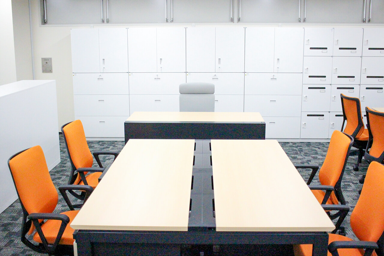 また、新しい考え方を導入する中で、書類などの収納スペースはできる限り削減しました。各部署で保管、保存が必要な書類量をしっかり洗い出し、考えうる最小限の収納にとどめスペースを確保、いろいろなエリアを作り出すことに成功しました。