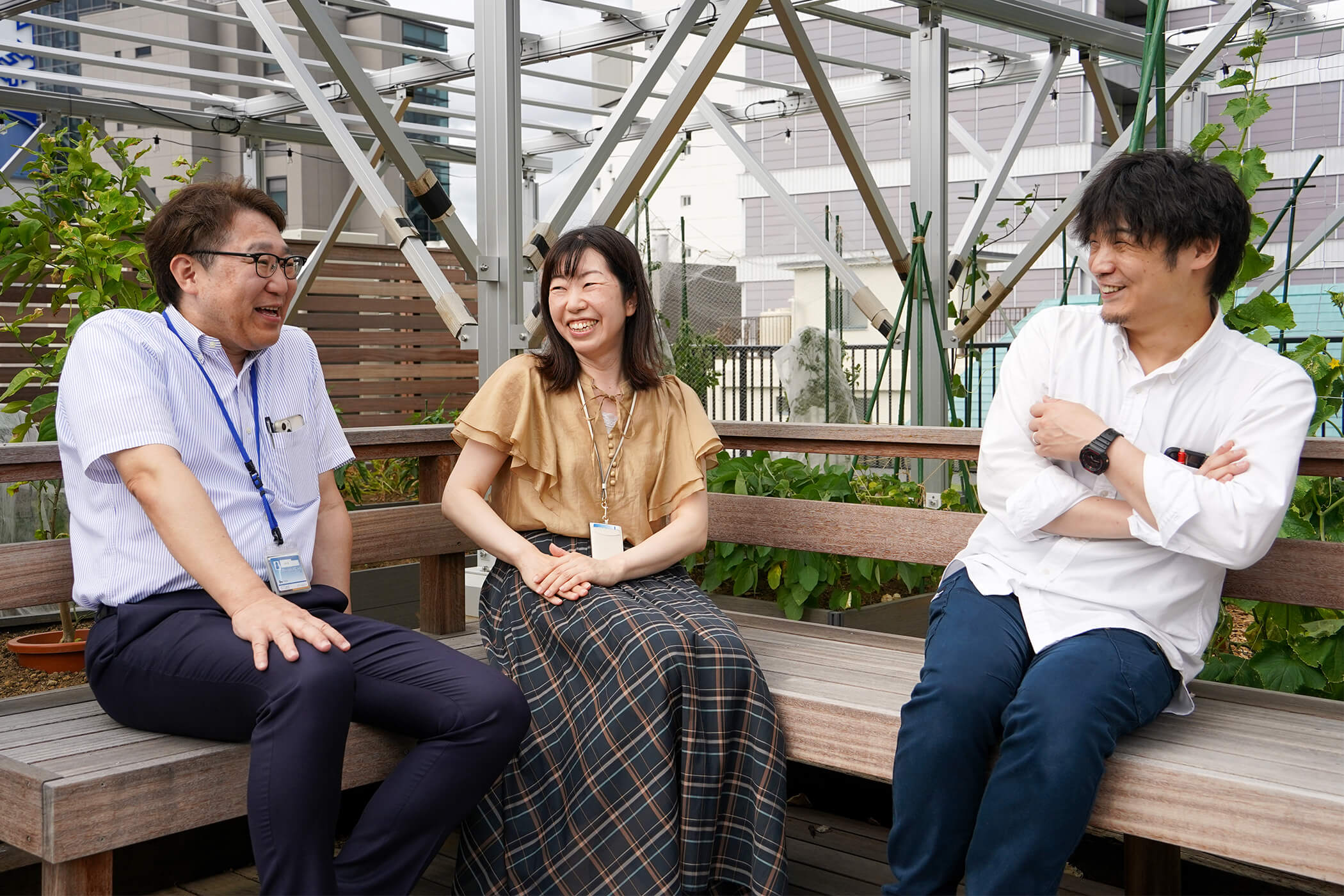 飯田さん:屋上庭園には、おしゃれな照明も付いているので、先日は仕事が終わった後にバーベキューパーティーをやりました。河合弁護士が収穫したナスやジャガイモをいただき楽しかったです。また、地下のホールでは古典芸能や音楽コンサートが何度も開催されており、事務所の中で文化資本を取り入れながら働くことができています。